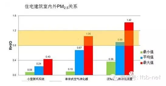中国建筑科学研究院曾开展系列调查,比较住宅在空气净化器、新风系统和无措施的情况下,PM2.5的情况: