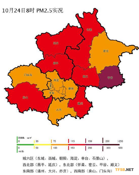 据北京市环境保护监测中心官方微博消息,受低压辐合天气系统影响,本市湿度大,风速小,扩散条件不利,目前PM2.5以轻度至中度污染水平为主,东部较重,达到重度污染水平。预计下午至傍晚冷空气将影响我市,空气质量转好。城六区:109;西北部:117;东北部:135;东南部:114;西南部:109。建议措施:儿童、老年人及心脏病、呼吸系统疾病患者应减少长时间、高强度的户外锻炼。