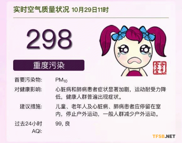 北方浮尘正在影响上海!今天中午11时,上海实时空气质量指数飙升到298,实时空气质量状况为重度污染。