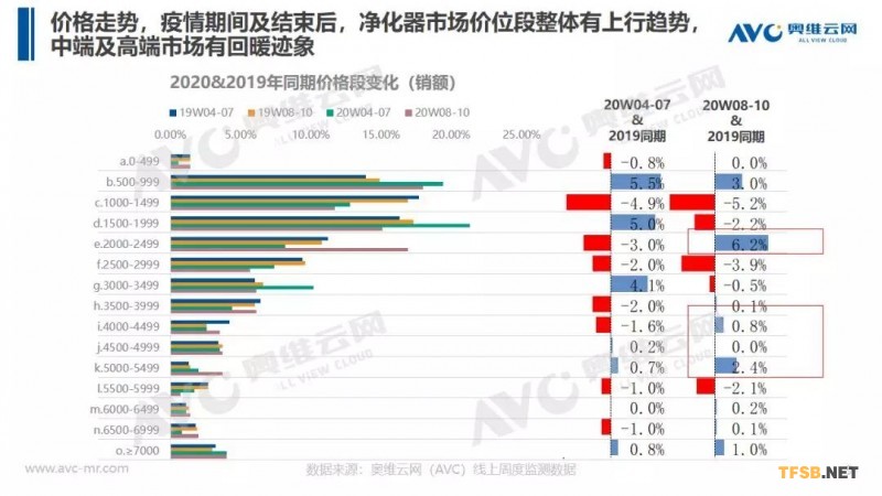 疫情期间我们分析各品牌增长的驱动因素发现,除了品牌、产品等因素外,线上电商平台通过试用、买赠方式促进成交,同时电商平台推出的免息分期付也拉动了产品高端化。且部分品牌通过李佳琦、薇娅等直播间短时间内达成大量成交,拉高市场份额,伴随着渠道业态的不断变化,净化企业需要持续关注流量走向,抓准主销渠道。