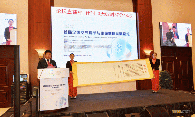 开幕式上,还举行了“2020首届全国空调调节与生命健康发展论坛”《倡议书》发布仪式,动员和号召全国暖通空调制冷与生命健康领域,加强沟通联合,推进融合发展,为实现健康中国发展战略贡献智慧和力量。全国工商联执委、中国空调博物馆馆长、河北省空调与制冷行业协会会长、新众业建设集团董事长刘俊良宣读了倡议书。与会领导和嘉宾在《倡议书》珍藏版上签了名,随后收入中国空调博物馆内永久留存。